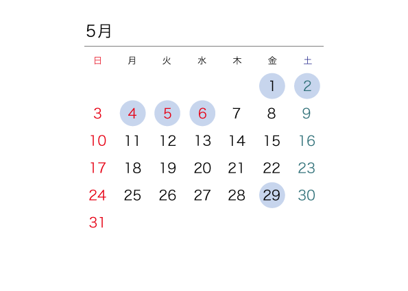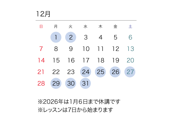 年間40レッスンのため日曜・祝祭日以外にもお休みが不定期にあります。